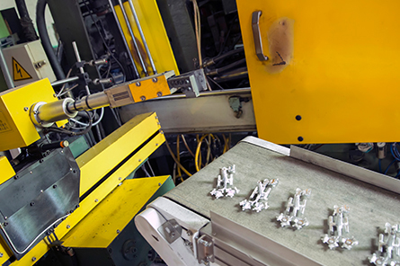 在谐达的压铸车间,一台台的压铸机和机械手高效运转,390度的高温,在高压作用下,将液态或半液态金属充填压铸模模腔,并在压力下成型和凝固而获得我们想要的铸件,同其他铸造技术相比,谐达压铸出来的产品表面更为平整,拥有更高的尺寸一致性。