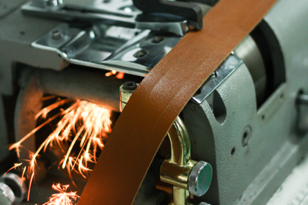 通过缝纫机对皮革制品进行缝合包裹,谐达的工匠对车线的要求极高,边距、针数、密度、走向都严格按照高品质车缝标准,并可在皮革上做车花,车字等工艺效果。