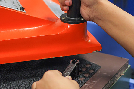 皮类的模具分为刀模和压模,刀模用于裁皮;压模用于热压和击凸,制造皮面肌理,压LOGO、文字、车线位虚线等。每一个模具的完成都是谐达工匠的精雕细琢下,时间和汗水的精心凝聚。