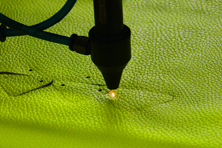 激光在皮类中一般用于激光裁皮和激光图案两种,谐达的全自动电脑激光切割机,采用进口的聚焦镜和硅底镀金镜片,精度更高、光斑更细、切割力更强,完善的防尘、防污染系统,极大地提高了产品的稳定性。